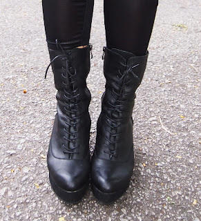 Ok, enough talk about the weather, let's talk about the outfit. The really cute navy, blue reigndeer sweater is from MissySweetQ and the faux leather leggings with an edgy zipper is from Forever 21 (find a similar one here). Love this pair of gorgeous military boots from Velvet (mine have platforms and are currently out of stock but this are of the same design just that the soles aren't platforms ) which are perfect with the leggings.